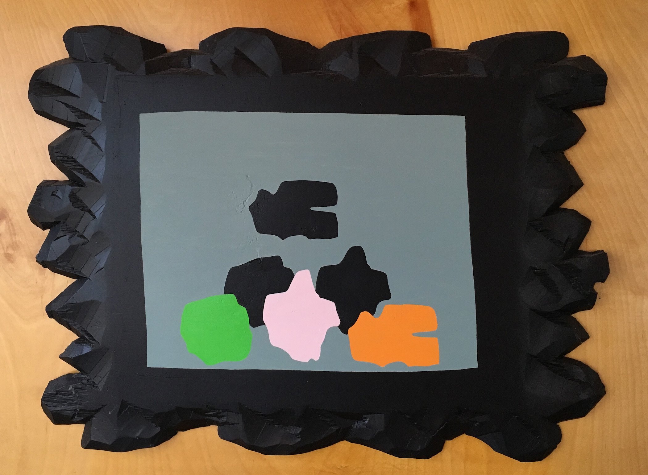 22”x29”, acrylic on found carved wood